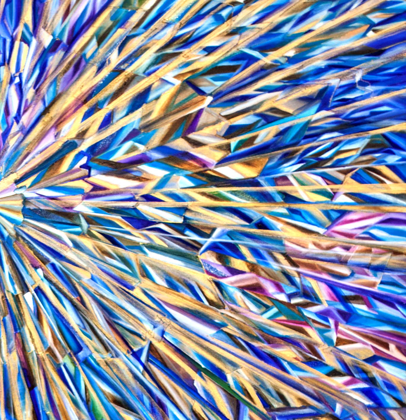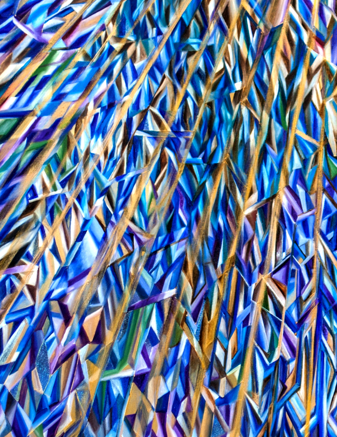 Формат холста прекрасно для этого подходил и я сделал следующим образом: сначала нанес ультрамариновую акриловую основу, придал картине "каркас" из паутины акриловых лучей и уже после этого начал его прорабатывать масляными красками.