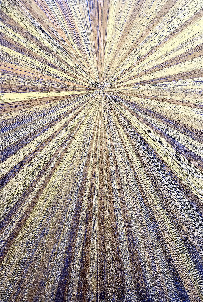 Формат холста прекрасно для этого подходил и я сделал следующим образом: сначала нанес ультрамариновую акриловую основу, придал картине "каркас" из паутины акриловых лучей и уже после этого начал его прорабатывать масляными красками.